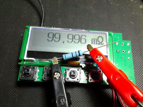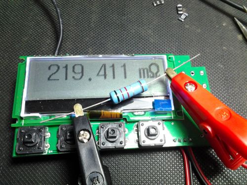 一、电阻的测量通常有电桥法,恒流法和比例法1、电桥法 当电桥平衡的时候(即A、B两点的电位差为0),Rx=R2*R3/R12、恒流法R=U/I,如果I恒定,测量电阻上的压降U,就可以算出R。这个方法是大部分台式万用表使用的方法,例如下图是Agilent E1412A里面的恒流源电路,测量电压就行了 3、比例法这是手持万用表最常见的方法。R0作为基准电阻,用R0上的压降作为ADC的Vref,测量Rx上的压降Vin,即可算出Rx 二、为什么我用比例法?每种方法都很经典,都可以达到很高的精度。例如lilith提到高联的 DCC 电桥,分辨率能有 9 位半以上;再如Agilent 34420A纳伏 / 微欧表用的是恒流法,1欧姆档的分辨力是0.1微欧但是不是每一个方法都适合DIY!DIY最重要的原则就是简单!电桥法需要3个精确的电阻,而且还有一个是可变的,这个DIY几乎无法实现。当然电桥也可以变形为有源电桥(下图仅仅是示意,这个有源电桥可不能测量微小的电阻),通过测量Uo算出Rx。不过还是需要3个精确电阻 恒流法的复杂性不用我罗嗦,看看Agilent E1412A的图就知道了(知道为什么我挑Agilent E1412A的图,因为这个表的“最简单”)。恒流法需要的精密元件更多:电压基准,一堆的精密电阻,比较好的模拟开关、FET、运放……而且要测量微小的电阻,测试电流不可能小,要分辨到1uOhm,至少要100mA的测试电流。除非你有Agilent 34420A那么低的噪声,才有可能用10mA分辨到0.1uOhm因此,这些方法都排除之后,剩下了最简单的比例法。比例法只有一个精确元件——基准电阻,其他的就靠ADC了。那好办,24bit的ADC也不贵,选个带24bit的MCU,最便宜的是C8051F350,还内置PGA,放大倍数最大到128~~原理图就很简单了,就是基本原理的翻版。不过这里用了一个磁保持继电器作为基准电阻的切换(下一个版本会取消这个继电器,贵,不好买,关键是这是毫欧表,测量到K级干啥) 锂电池供电,顺便做了个充电器,从USB充电,还有4个按键,由于IO口不够,加上有一个还要做电源键,按键搞得复杂了点 提一下精度问题,比例法唯一的一个精密元件就是基准电阻,这个东东90%的精度是由它决定的(ADC/PGA的offset等误差理论上是可以校正的,PGA增益温漂大概是0.5ppm/度),而这个电阻还是有功率的(100mA^2*30欧姆=0.3W),基准电阻的自发热比较明显,我用2W的电阻都会觉得有一点温度。我现在用的是一个2W的金属膜电阻,冷态开机到热稳定,测量值会下降几十微欧(想想为什么是下降?)。因此电阻的温度系数是(短稳)精度的最大敌人。节后,考虑换成VHP-4或者 VPR221Z。说了这么多,看看效果吧