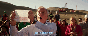 一直以来,有类电影总是能够带给观众一种难以言说的震撼力——真实事件改编。因为有时候不需要虚构的想象与夸张的设计,真情与真实自会触动人心。比如我之前推荐给大家的《美国田园下的罪恶》《食人狂魔》《牧人与屠夫》,比如我今天要聊的这部——《地心营救》。 影片于今年三月在国内公映,口碑不错,但关注的人不多,算是引进片中比较冷门的一部。 原海报与中文海报首先要说的是,本片的中译名以及中文海报上“最强兄弟团,逃生大作战”这样的宣传语颇具误导性。如果事先没有了解,很容易让人以为这是一部科幻动作片。而实际上,它是一部历史传记类的剧情片,改编自曾轰动世界的智利矿难——2010年8月5日,圣何塞铜矿发生坍塌事故,33名矿工被困在700米深的地下;随后政府介入展开救援,被困矿工积极自救;最终在事故发生69天后,所有人全部逃出生天。 10月13日晚最后一名被困矿工路易斯亚成功升井 (新华社图片)而以真实事件为依托,便决定了《地心营救》的某种特殊性。因为对于一般虚构类的灾难片来说,“身处险境中的人能否存活到最后”通常是这类电影中的一个重要悬念。但在本片中上述悬念不复存在,观众知道人最终是会获救的,知道获救是多方共同努力的结果。创作者也并没有在影片中刻意添加一些讽刺政府、考验人性的桥段——它更偏重于对事实的还原、对人物情感的捕捉,更像是一次对“人类生存奇迹”的深情回望。 由于是群像电影,涉及人物众多,且地下环境昏暗人的面孔难以辨认,所以电影并没有着急进入主线故事,而是先通过对矿区之外的日常生活图景的呈现来塑造人物。片中涉及到的主要人物有——马丽奥,他不仅拥有一个幸福美满的三口之家,在矿上颇有人缘;影片开始时,他为工友们组织了一场欢乐的趴体。 亚历克斯,他是个年轻热情的帅小伙,因为妻子怀有身孕马上就要生产,他的父亲屡次劝他不要再在上工作了,但因为其他工作赚得更少,亚历克斯一直不听。 卢乔,他是矿上的工头,也是专门负责安全的技术人员。 尤尼,他是矿上有名的“情圣”,妻子与情人经常为了他争风吃醋。 马马尼,是新来的玻利维亚人,也是矿上唯一的“外国人”。 格斯,在矿上已经干了46年,还有两周就要退休。 达里奥,他由自己的姐姐玛丽抚养长大,但姐弟之间的关系不太和睦。 电影在塑造这些人物时,始终保持着一种轻松的基调——配乐欢快,画面色彩艳丽,即便生活在社会最底层,但你在这群矿工脸上找不到任何麻木悲伤或者自怨自艾的神情;就连马上就要下井干活的时候,大家还一直在为两周后就要退休的格斯鼓掌欢呼。 从这里我们就能看出本片的优点之一,即它从始至终都没有以“俯视”的姿态把矿工视为“弱势群体”,它不靠“卖惨”来撩拨观众的情绪。而往往矿工们表现的越欢乐,观众们也越揪心,因为在上帝视角的我们知道,这注定是一场充满危险的旅程:在工人下井之前,经验老道的卢乔就告诉矿上的负责人说“山体结构有危险,应该先检查一下坡道” 但负责人毫不在意,先是轻描淡写地跟他说“没问题”,之后更是“警告”他——你的工作不是保证矿工的安全,而是保证每天可以挖出250吨的矿。 是的,对于企业来说,他们更在乎的永远是利益。而卢乔尽管预见到了危险,但为了保住工作他也只能硬着头皮带领工人们下井。在矿工们进入地下的时候,导演设计了一个颇具隐喻味道的镜头——随着摄影机的持续后移,洞口渐行渐远,似乎就在预示着他们即将被长久的黑暗包围。 果然,工人们到达矿洞没多久,山体坍塌就突然发生。 一时间仿佛整个世界都在摇晃,接着,反应过来的众人跳上车准备逃跑。而由于坍塌是从上往下的,所以大家只好把车开到地下更深处的避难所。尽管一路上又经过了诸多惊险——车一边向前开,后面的岩石一边下落; 剧烈的摇晃中有人没第一时间跑上车; 但好在矿工们彼此互相帮助,最终,33名矿工全部抵达位于地下700米的避难所。当中有的人受了伤,但更严重的是,此时出去的路已经被一块巨大岩石完全封死。而因为企业本来就不在乎工人们的死活,所以所谓的应急设备其实只是装装样子——本该由避难处通往地面的逃生梯偷工减料只安装到一半; 对讲机根本没接电线,只是个摆设; 医药箱里也几乎一无所有。 也就是说,矿工们没有任何出去的办法,也找不到任何与外界联系的途径。他们能做的便只有等待,而毫无疑问这种一无所知的等待过程是对人的心理的极大挑战。正如片中所展现的,因为几天过去依然听不到任何救援的动静,有的人开始崩溃——他们都没装完逃生梯,你觉得他们会花钱营救我们么? 饥饿的人群开始争抢避难所内只够吃三天的食物。 毫无疑问,如果情况继续这样下去,他们很快就会饿死。这时,军人出身的达里奥站了出来。他先是强调了食物在等待救援中的重要性—— 之后更是慷概激昂地表达了对救援的信心——他们会行动起来的,他们不做,我们的家人也会做的;如果需要,他们会用手来挖。 这一番话打动了众人,达里奥因此被推选为管理食物的“领袖”。而另一方面,当镜头从矿洞移到地上,你会发现他说的那段关于家人的话确实没错。塌方发生后,数十名矿工家属连夜赶到了已经被企业封锁的事发现场。 其中玛丽面对保安的警告与威胁毫无惧色,声嘶力竭地发出质问——营救
