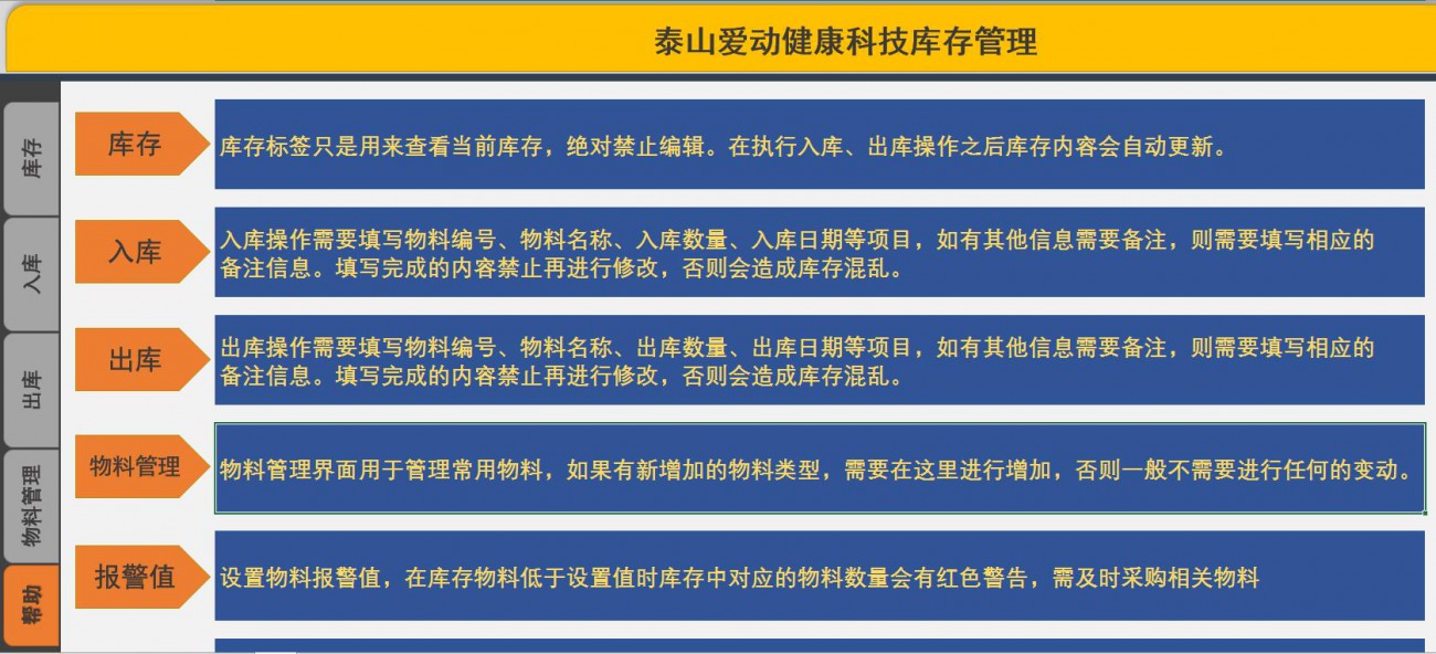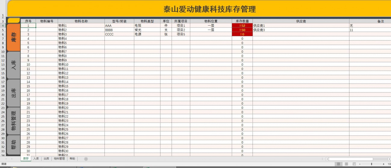 公司电子料不是太多,没必要买专门的软件来做,所以抽时间自己用excel做了一下先看一下截图 在帮助页面有几个按钮现在是不起作用,因为我把相关的标签隐藏了,想做成大部分标签都是隐藏的,而且超链接也能用,但是还没实现。如果有懂VBA的同学可以告知如何实现。